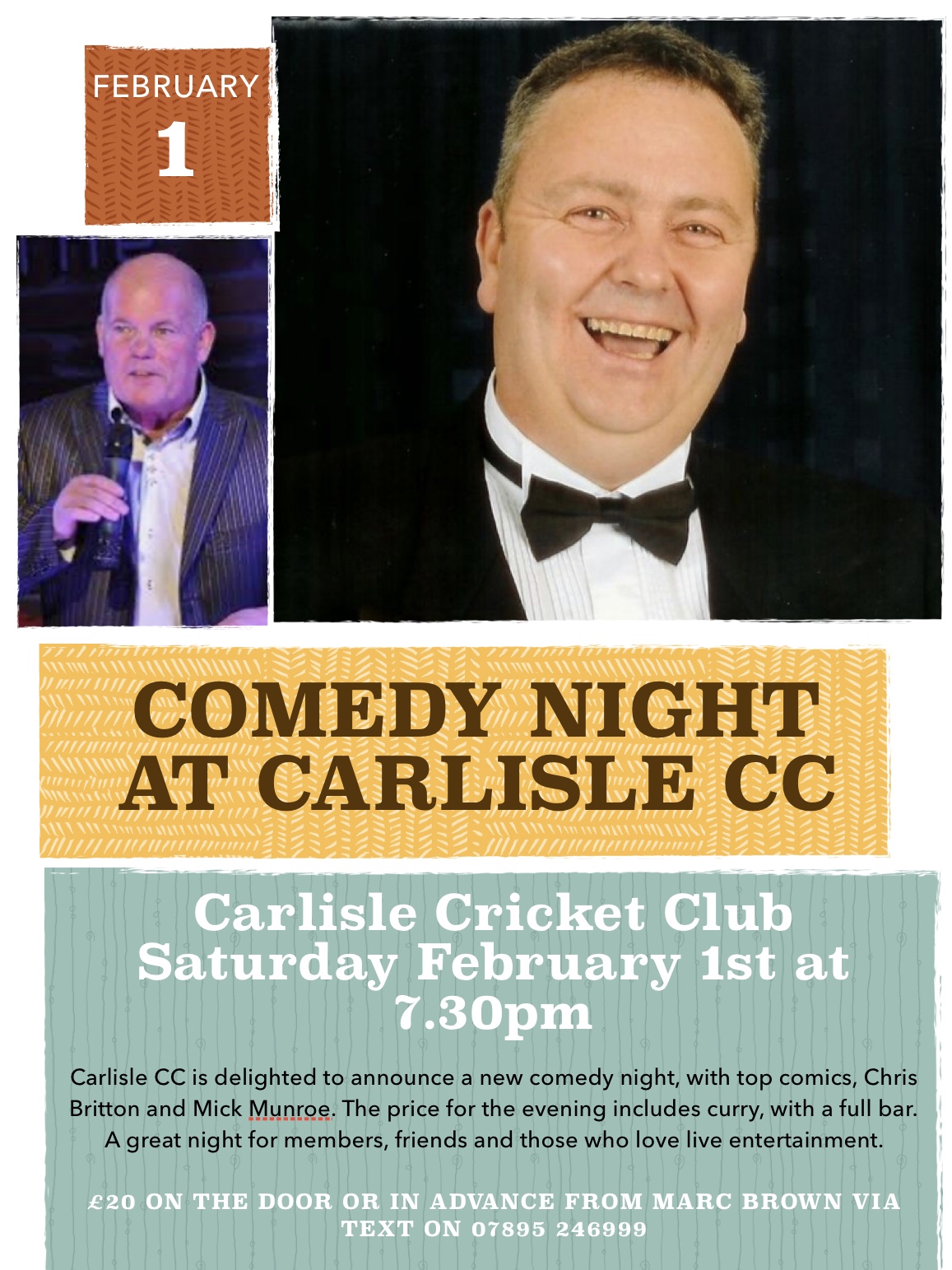 We are delighted to announce our first comedy night at Carlisle CC - on Saturday February 1st.